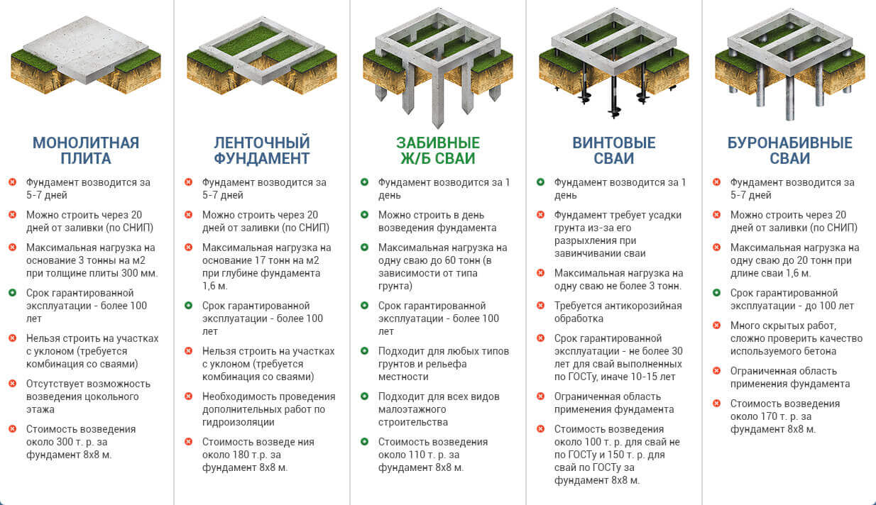 Сравнение фундамента на забивных железобетонных сваях в Скоропусковском